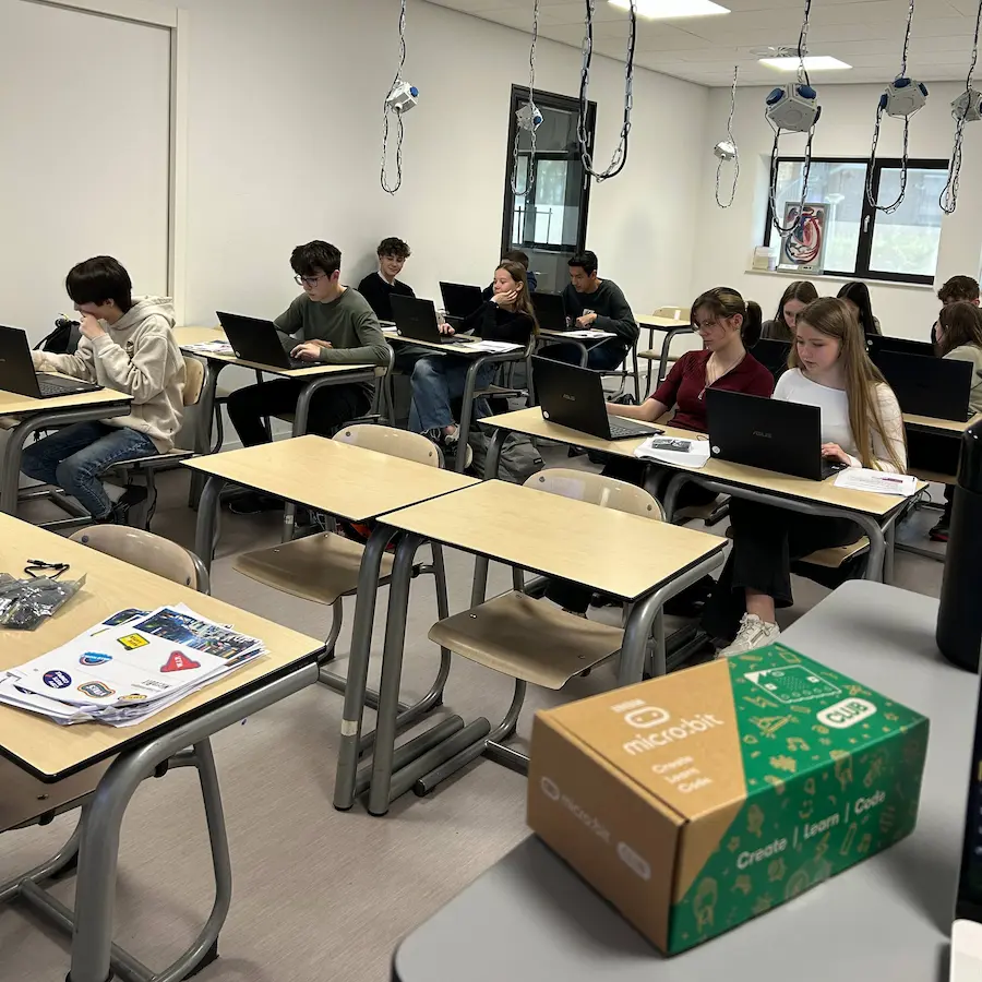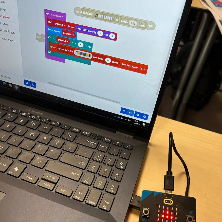 De workshop maakt gebruik van een online omgeving en een micro:bit. De school dient hiervoor laptops met UBS-A aan de studenten te lenen.
